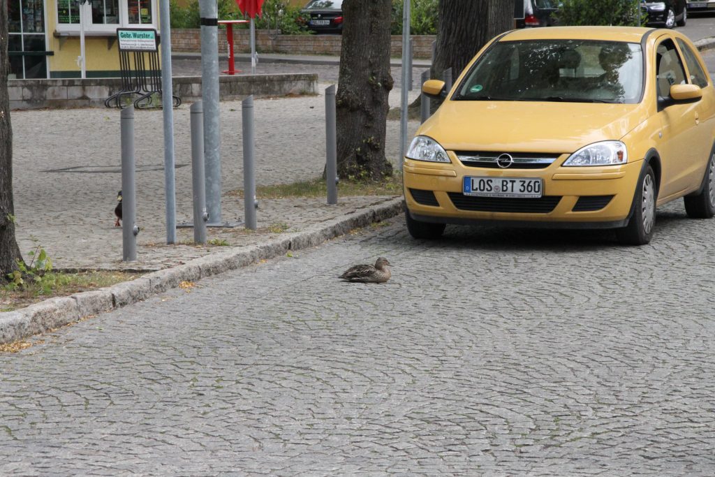 Wussten Sie eigentlich, das an der Woltersdorfer Schleuse die Enten den Verkehr regeln ?. ( siehe Foto )