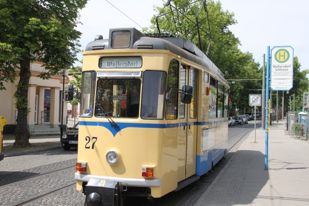 Übrigens, Woltersdorf besitzt seit 1913 eine eigene Straßenbahn. Die Nostalgie Tram, Baujahr 1960, verkehrt zwischen dem S – Bahnhof Rahnsdorf und der Woltersdorfer Schleuse.