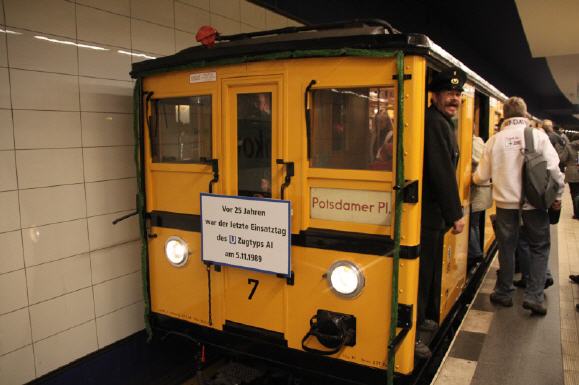 Nostalgisches Fahrgefühl aus den Anfangszeiten der Berliner U-Bahn konnten Fahrgäste am 16.11.14 auf der Linie U2 genießen. Zwischen Pankow und Potsdamer Platz waren zwei Züge vom Typ A1 , mit jeweils drei Wagen unterwegs. Ein gültiger Fahrausweis reichte für die Mitfahrt. Foto (C) Günter Meißner