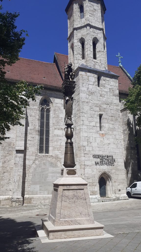 Weiter geht es zur Kornmarktkirche, dem Bauernkriegsmuseum, vor der ein neues Denkmal eingeweiht wurde. Die sieben Meter hohe Statue war bereits vor 500 Jahren von dem Maler Albrecht Dürer entworfen. Sie zeigt einen sitzenden Bauern, dem ein Schwert in den Rücken gerammt wurde. Über die Zeit der Vor- und Frühreformation sowie den Bauernkrieg in Thüringen informiert aktuell die neukonzipierte Dauerausstellung „Luthers ungeliebte Brüder“. In Fokus stehen hier die Geschehnisse und Umstände des Bauernkrieges der Jahre 1524 und 1525. Ausgehend von den bäuerlichen Forderungen und entlang der überlieferten Ereignisse werden wir als Besucher an die handelnden Akteure sowie die gesellschaftlichen Herausforderungen der Zeit herangeführt. Neben Thomas Müntzer und Martin Luther auch weitere in Franken oder Schwaben wie Götz von Berlichingen, Jacob Wehe, Hans Müller und weitere Anführer der Bauernhaufen. Im Mittelpunkt stehen die 12 Artikel (Forderungen) der Bauern.