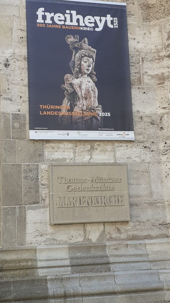 Wir starten unsere Reise zu den historischen Orten direkt in Mühlhausen. Dort begüßt uns Teil 1 der Landesausstellung zum Jubiläum in der Marienkirche.