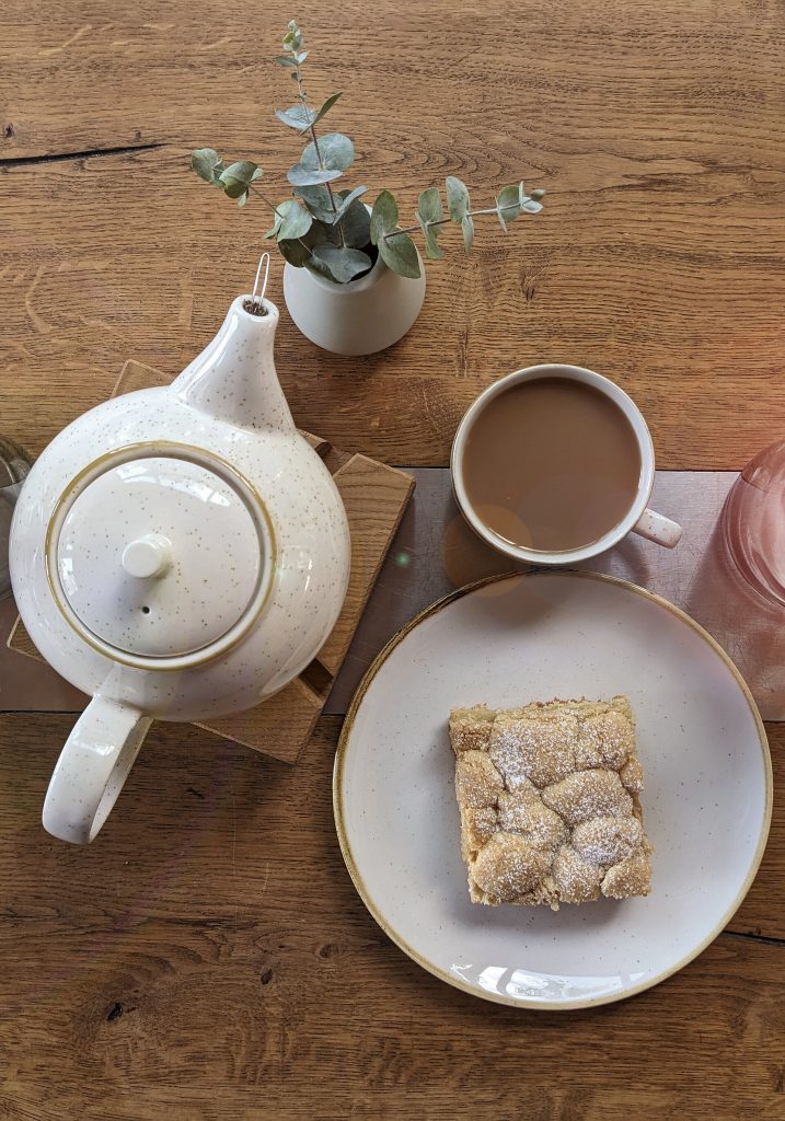 Kieselkuchen serviert an einer Tasse Tee, Lahntal Foto: Rheinland-Pfalz Tourismus GmbH /Lukas Schmitt