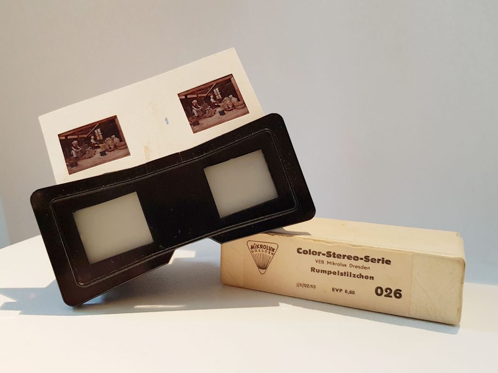 Zur Sonderausstellung gehört nicht nur das Gerät selbst, sondern auch eine Auswahl an Bildkarten im Original, die im Stereomat verwendet wurden. Die Motive reichen von Aufnahmen der Dresdner Innenstadt bis zu Märchenbildern, wie dem gestiefelten Kater. Der Preis für die Bildkarten-Auswahl belief sich auf circa 6,60 DDR-Mark.
