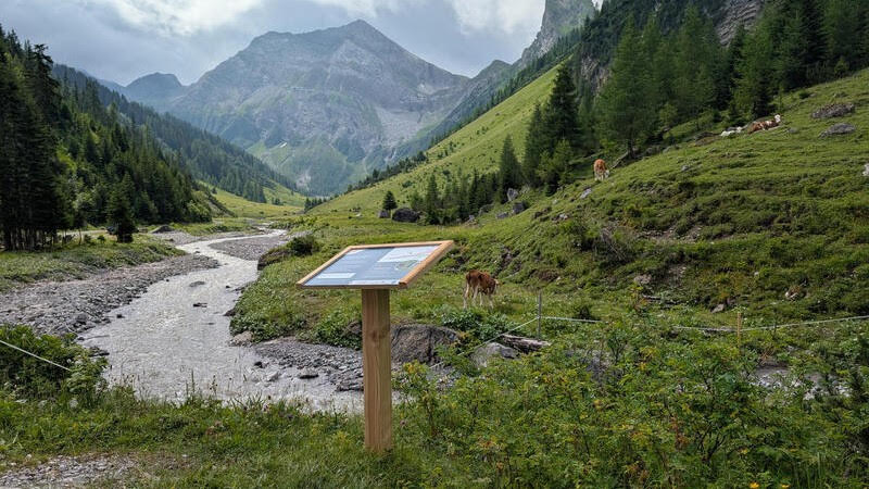 Entlang des neuen Naturwegs Alpe Kaisers im Tiroler Lechtal geben Erlebnisstationen inklusive Mitmach-Tipps spannende Einblicke in Wald, Klima und das Almleben in der österreichischen Region. © Lechtal Tourismus/Christoph Moosbrugger