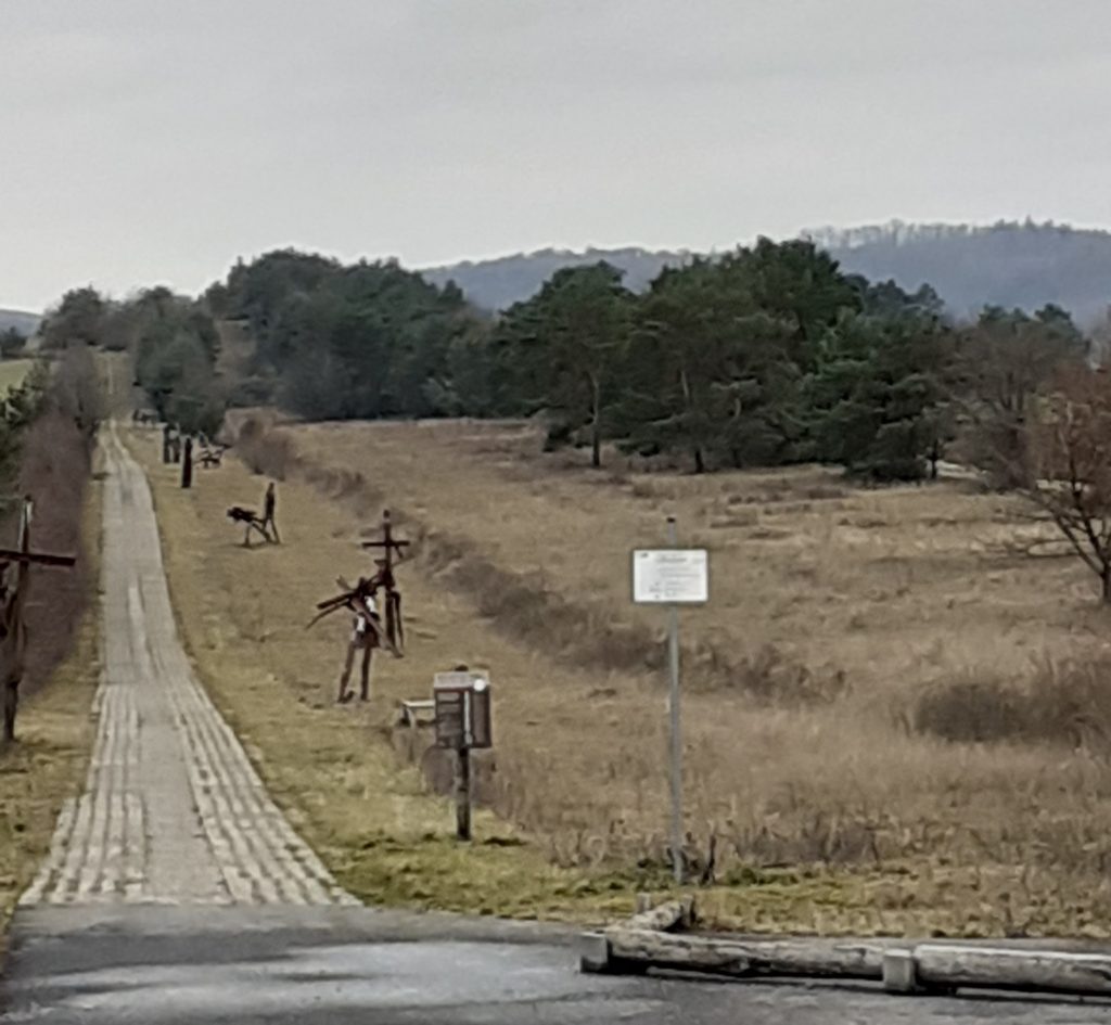 Teile des ehemaligen Kolonnenweges sind heute Wanderweg. Der Bildhauer Ulrich Barnickel schuf den „Weg der Hoffnung“.