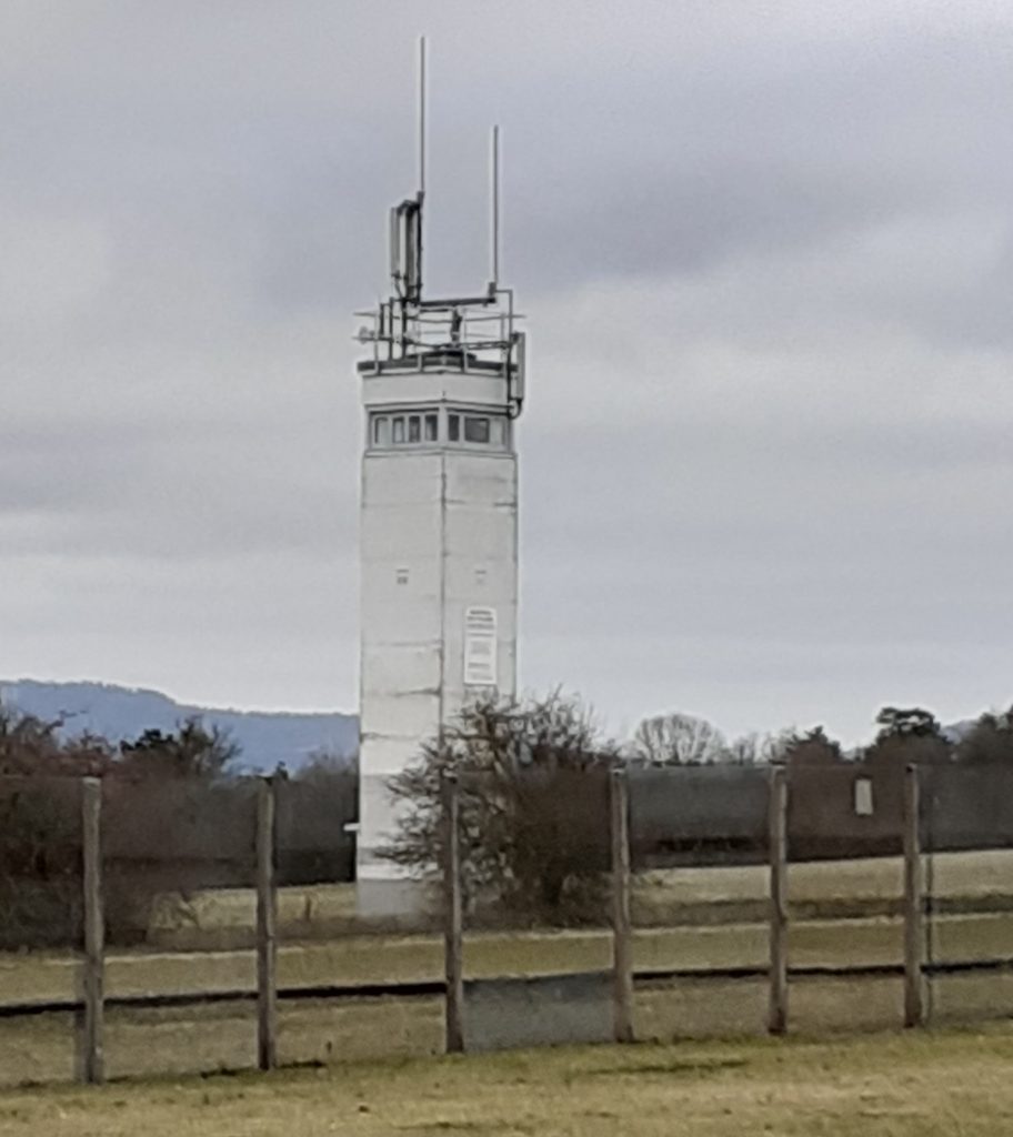 Wir besichtigen den Komplex amerikanischer Stützpunkt auf der hessischen Seite und einen Streifen der originalen Grenzsicherungsanlagen der DDR auf Thüringer Seite.