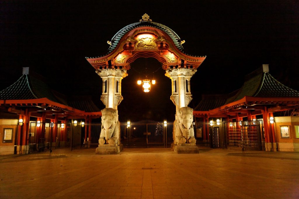 Foto: © 2025 Zoo Berlin / © Tierpark Berlin Eingang Elefantentor bei Nacht_Zoo Berlin