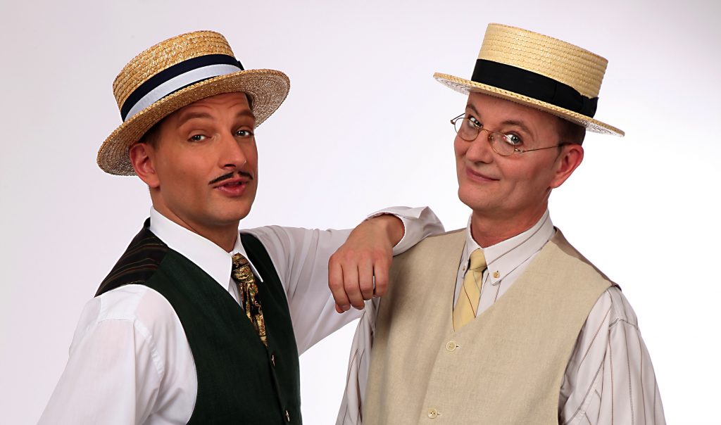 Bildunterschrift: Die Wilden Wittwer nehmen ihr Publikum am Samstag ab 10.30 Uhr mit auf eine musikalische Weltreise. In 80 Minuten geht es mit den beiden Herren einmal um die ganze Welt – bei MUSIK IM KORB vor dem Neuen Rathaus Bernau.