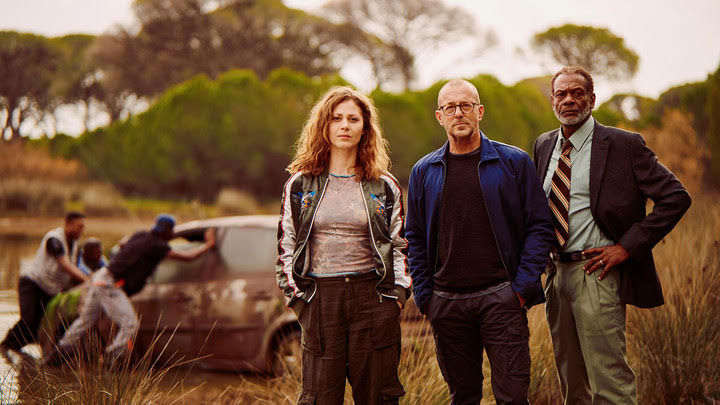 Von links: Caroline Jakobs (Katharina Schlothauer), Mo Wagner (Heino Ferch) und Kommissar Lomboto (Errol Trotman-Harewood). Copyright: ZDF/Marq Riley